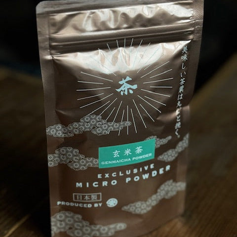 香ばしい煎り玄米と茶葉を一緒に挽きあげた玄米茶パウダー。